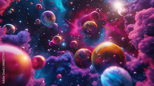 A 3D illustration of a vibrant universe with undiscovered planets.