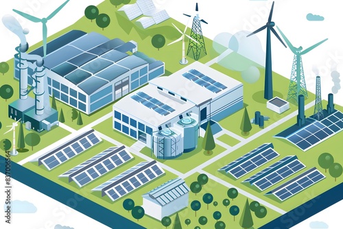 solar panel, wind turbine, industrial park, renewable energy, model, factory, power, energy, clean energy, green energy, sustainability, environment, technology, future, innovation, environmentally friendly, climate change, global warming, pollution, emission, energy efficiency, energy production, solar energy, wind power, alternative energy, renewable resources, industrial complex, infrastructure, city landscape, futuristic, design, electricity