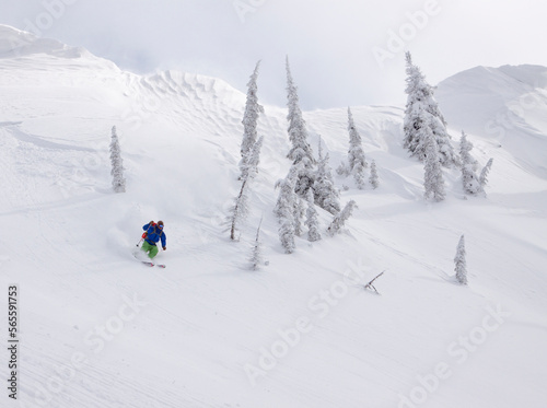 cold, day, extreme sport, full-length, horizontal, idylli, landscape, montana, mountain, nature, one person, outdoors, scenic, skier, skiing, snow, sport, activewear, calmness, tranquil scene, tree, us, warm clothes, winter, winter sports, young adult