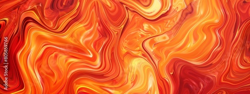 A background of orange and red, featuring swirling patterns reminiscent of lava flow in an abstract style. The colors blend seamlessly with the warm hues to create a sense of movement and energy.
