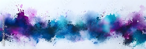 A background of vibrant watercolor splashes in shades of purple, blue, and teal, fading softly into the white background.