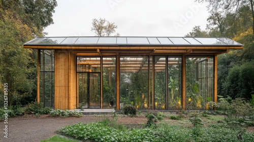 A bamboo and glass hybrid structure blending modern and natural elements