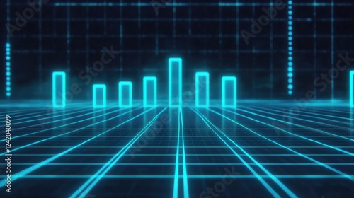 A bar graph with vibrant blue bars against a dark grid background, each bar casting a faint glow to emphasize individual data points