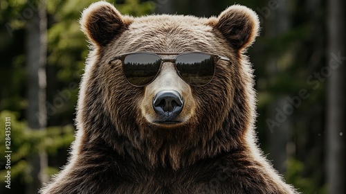 bear, sunglasses, autumn, forest, wildlife, playful, nature, gold, sunlight, animal, style, confidence, wilderness, scene, outdoors, reflections, foliage, cool, beauty, character, wood, fun, adventure, leisure, landscape, humorous, environment, exploration, majestic
