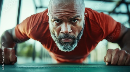 bearded, man, orange, shirt, sharpened, strength, endurance, urban, exercise, push, press-ups, physical exercise, concentration, masculinity, fitness, resilience, power, determination, gym, hard work, muscle, training, morning, dedication, modern, regime, tenacity, exertion, aerobic, preparation, commitment, health, lifestyle, bald, athletic, conditioning, vigour, 21st century, perseverance, sport, effort, active, dynamic