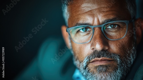 bearded, man, goggles, introspection, wisdom, contemplative, portrait, modern, detail, expression, eyeglass, thoughtful, depth, sharpened, insight, sophisticated, stoic, identity, looking, sharp, vision, personal, intellect, digital, cognition, philosophy, reflective, current, urban, trend, calm, poise, steady, posh, deep, character, contemporary, aesthetic, mature, aged, visual