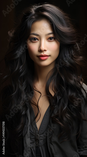 A Beautiful Asian African Woman Sweet Smile Bright Eye Beauty