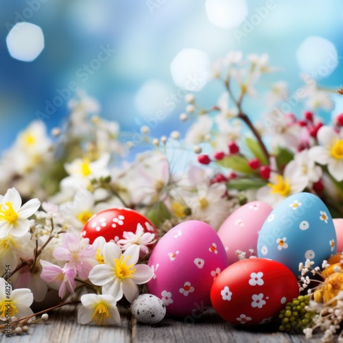 easter, egg, spring, holiday, decorative, celebration, flower, blue, seasonal, yellow, background, symbol, tradition, green, april, pink, colourful, festive, nature, floral, food, wooden, design, concept, wood, rustic, happy, vintage, paint, table, red, violet
