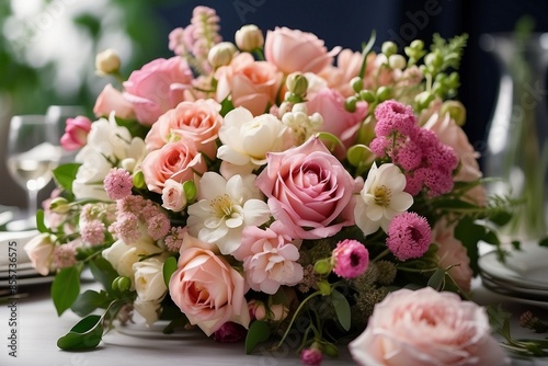 A beautiful bouquet of fresh flowers brings elegance to the table