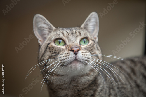 portrait, close, tail, domestic, mammal, home, table, brown, kitten, play, looking, pet, black, relaxed, isolated, white, purebred, curious, window, whisker, mood, gold, tongue, confident, studio, indoor, short, beautiful, breed, cute, fur, grey, cat, background, pedigree, animal, felino, pretty, eye, tabby, happy, adorable
