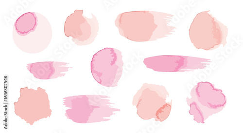 watercolor, brushstroke, pink, peach, abstract, artistic, design element, paint, texture, graphic, creative, hand-drawn, smudge, splash, stain, blot, laundered, pastel, soft, delicate, feminine, elegant, modern, collection, set, isolated, white background, background, decoration, decorative, invitation, wedding, beauty, cosmetic, spring, summer, organic, irregular, vibrant, cheerful, rose, reddening, coral, shape, circle, round, blob, spot, stroke