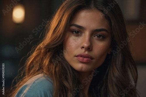 A beautiful Colombian young woman with brown eyes and dark hair.