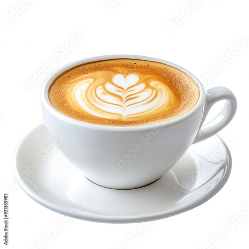 A beautiful cup of latte art coffee, showcasing creamy texture and intricate design, transparent background