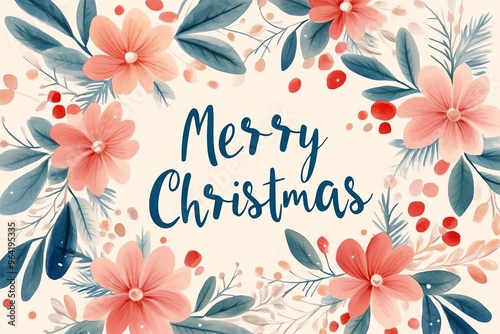 A beautiful floral design featuring pink and green elements, perfect for festive Christmas greetings and seasonal decor.