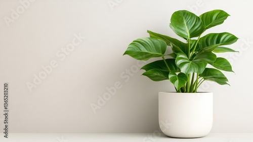 A beautiful green potted plant stands against a minimalist background, representing a harmonious blend of nature and modern design, creating a refreshing indoor atmosphere.