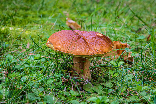 A beautiful healthy mushroom. Boletus growing in grasses.
