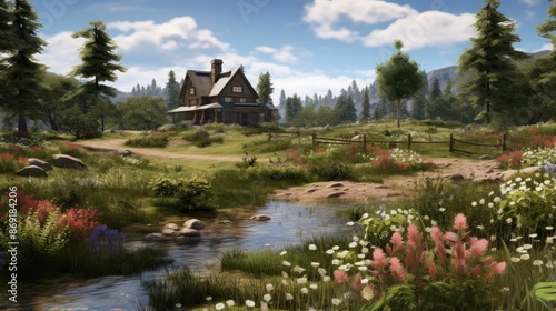 photo, cabin, bungalow, countryside, creek, flower, foliage, forest, home, house, landscape, mountain, nature, path, plant, rural, scenic, stream, tree, vale, water, wilderness, wildflower, wood, beautiful, colourful, vibrant, green, lush, natural, peaceful, picturesque, pretty, serene, stunning, tranquil