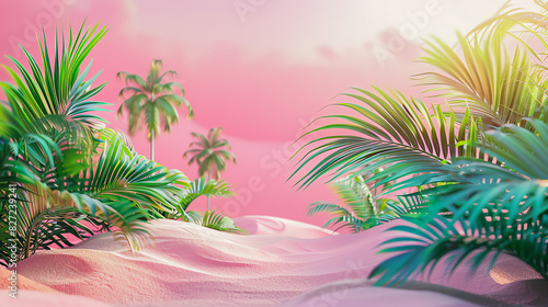 A beautiful pink desert landscape with palm trees