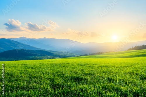 horizon, scenery, vale, travel, fog, mountain, land, dawn, harvest, sunrise, dusk, meadow, sunlight, scene, village, pasture, hill, rural, scenic, morning, evening, light, cloud, sun, sunset, blue, sky, sunny, vacation, colours, grass, green, field, nature, country, environment, farm, plant, season, spring, background, summer, beautiful, countryside, landscape, day, agriculture, forest