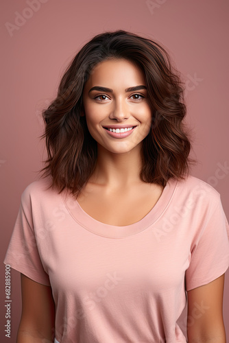 casual attire, t-shirt, smile, cheer, expression, woman, beauty, face, fashion, person, clothing, lady, studio, model, portrait