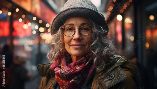 woman, lifestyle, smiling, adult, winter, happiness, city life, missy, cheerful, warm clothes, beauty, 1, woman, portrait, night, only, looking, elegance, casual clothes, real people, young, fashion, cap, confidence, illuminated, eyeglass, street light, autumn, adults only, avocation, fashionable, brown hair, fashion model, holiday maker, dusk, jacket, toothy smile, sunglasses, joy