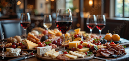 charcuterie, cheese, red wine, gathering, dining, fruit, nut, epicure, table setting, cosy, mediterranean, glassware, meat, platter, celebration, friends, hospitality, elegant, rustic, pleasure, taste, fine dining, wine tasting, aroma, variety, snack, culinary, cheeseboard, grape, olive, entertaining, favor, meal, leisure, enjoyment, drink, atmosphere, seasonal, indulgence
