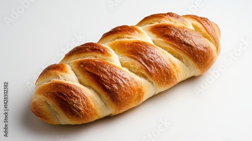 A beautifully braided bread loaf featuring a golden-brown surface, promising a soft texture inside, great for sandwiches or enjoyed with butter.