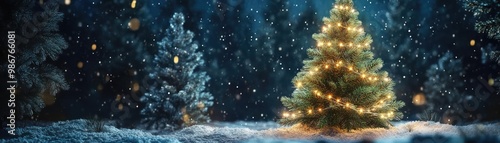 A beautifully decorated Christmas tree lights up a snowy landscape, creating a magical winter ambiance and festive spirit.