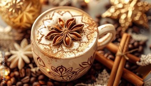 hot drink, cup, anise, latte, beverage, warmth, rich, tradition, enjoyment, warm, stylish, seasonal, relaxation, festive, elegance, luxury, party, inviting, comfort, cosy, taste, hospitality, treat, favor, indulgence, spice, aroma, mug, bean, art, cafes, creamy, aromatic, epicure, holiday, design, frothy, celebration, drink, decoration, cinnamon, sweet, winter