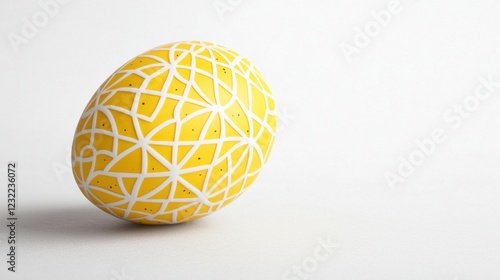 A beautifully designed yellow egg with intricate white patterns, perfect for Easter celebrations or festive decoration inspirations.