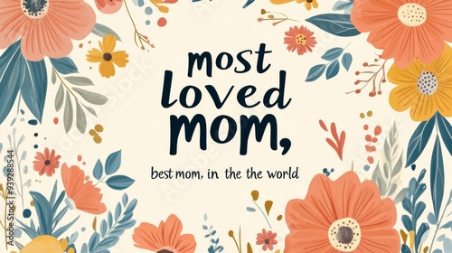 A beautifully illustrated floral frame surrounds the text 'most loved mom, best mom in the world,' highlighting the affection and appreciation for motherhood.