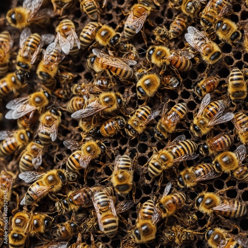 A bee cluster hibernating in hive, isolated clean background