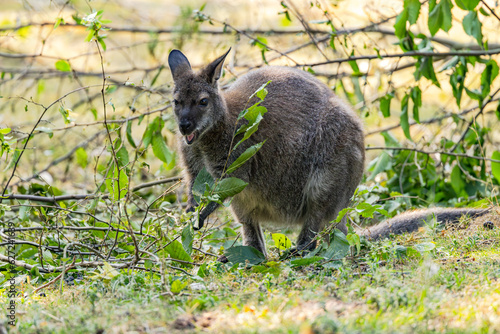 tree branch, hand, marsupial, eats, leaf, zoo, german, eye, tree, ground, coppice, fur, food, teethed, grass, herb, kangaroo, ear, tail, mammal, animal, forearm, wallaby, twig, fibrous, eat, keep, popular, hardy