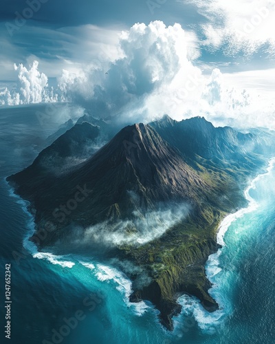landscape, volcano, island, pacific, aerial, nature, geology, eruption, coast, ocean, tropical, ecology, adventure, travel, beauty, scenery, wilderness, coastline, horizon, rugged, formation, planet, biodiversity, exploration, environment, remote, picturesque, vibrant, cliff, relaxation, water, marin, sunshine, cloud, serenity, scenic, paradise, escape, calmness, isolation, treasure, uninhabited, allure, mesmerizing