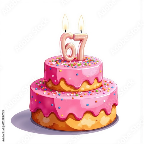 a birthday cake with the number 67 on it