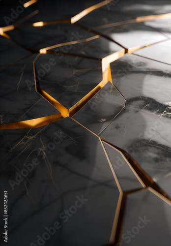 A black and gold marble floor with cracks.