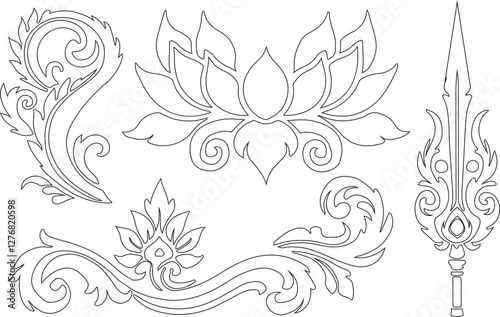 lotus, flower, leaf, silhouette, black, decoration, design, floral, line, nature, vector, plant, contour, ornament, outline, drawing, lily, person, art, illustration, white, flora, pattern, background, blossom, artwork, black-and-white, border, glamour, graphic, hand-drawn, horizontal, lady, monochrome, oriental, ornate, print, repeat, row, salon, vignetting, stem, tattoo, vogue, botanical, drawn, vignetting, abstract, continuous