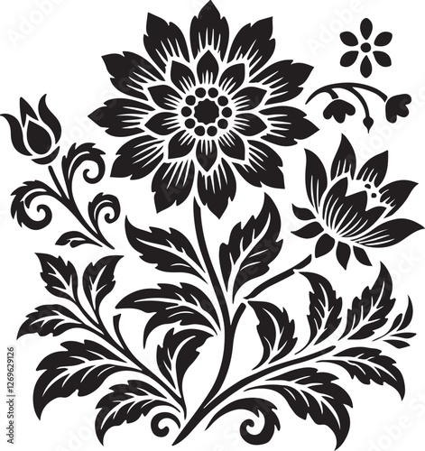 a black and white floral design