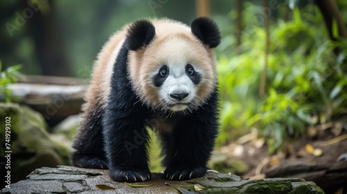 giant panda, rock, standing, confident, marking, strong, alert, habitat, environment, wildlife, mammal, endangered species, bamboo forest, china, asia, nature, wild animal, endangered animal, zoo, cute, adorable, wilderness, fur coat, big bear, environmentalism, protection