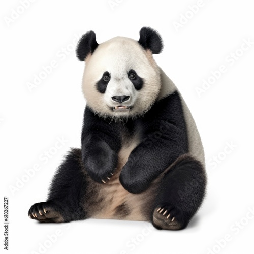 A black and white panda bear sitting on its hind legs created with Generative AI technology