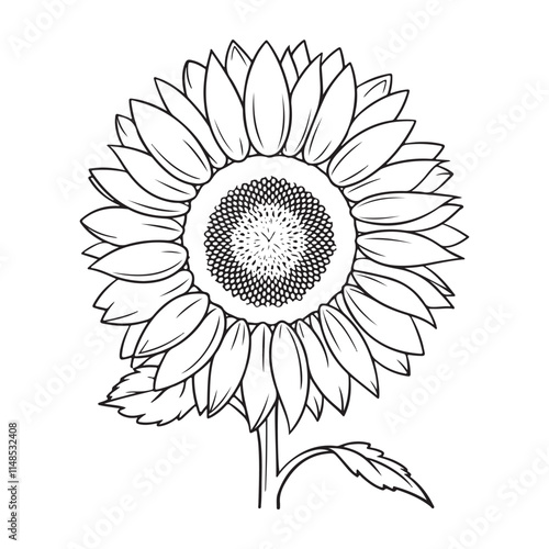 sunflower, flower, nature, plant, leaf, summer, art, illustration, beauty, photo, design, line, growth, no people, drawing, blossom, black, floral, background, horizontal, sun, white, pattern, agriculture, garden, monochrome, seed, closeup, flower petals, outdoors, yellow, black-and-white, graphic, botanical, color image, botany, flora, season, spring, meadow, realistic, us, sunlight, vignetting, isolated