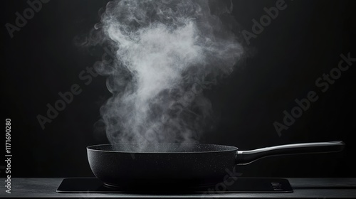 pan, black, stove, empty, steam, rising, structure, white, grey, cooking, heating, food, liquid, pure, background, detail, scene, nobody, kitchen, utensil, cookware, hot, vapour, appliance, surface, interior, domestic, household, atmosphere, horizontal, illustration, still life, focal point, contrast, highlight, absence, visual arts