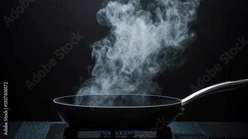 pan, smoke, cooking, steam, kitchen, heat, gas, stove, handle, black, silver, surface, appliance, flames, fume, vapour, hot, utensil, simmer, boil, fries, sauté, ventilated, extractor, mist, cloud, air, condensation, liquid, evaporation