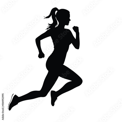 a black silhouette of a woman in a running pose.