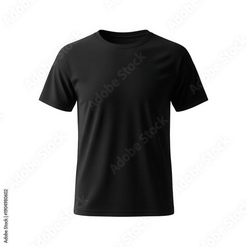 A black t-shirt on a white background isolated on transparent background