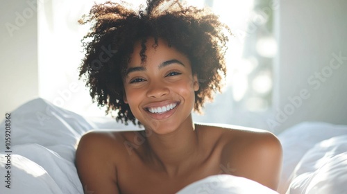 black, woman, short, curl, smiling, bed, white, soft, nature, person, hand, casual attire, modern, morning, outdoors, curly, hair, blanket, freshness, enjoy, outside, carefree, cheerful, thirst, peaceful, airy, african, fashion, beauty, lifestyle, bright, comfortable, attractive, sleep, expression, laughing, looking, streaming, health, afro, clean, pretty, caucasian, portrait