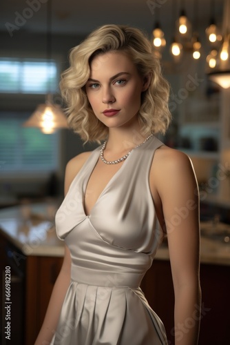 clothing, person, lady, model, indoor, shoulder, fashion, dress, woman, makeover, waist, girl, blond, satin, wall, wearing, fabric, standing, elegant, glamourous, confidence, stylish, grace, poise, allure, beauty, femininity, sophisticated, chic, runway, sewing, designer, trendy, ornate, aethereal, enchanting, enchantment, enchantress, gracefulness, elegance, sensual, vibrant, radiant