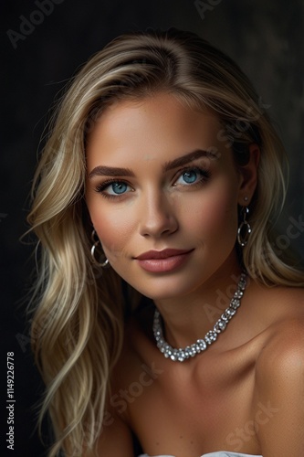 blond, woman, blue, eye, flawless, skin, radiant, complexion, deliciously, hair, modern, beauty, portrait, glowing, soft, charming, captivating, elegant, natural, fashion, face, model, make-up, glamour, make-up, jewellery, people, necklace, person, lady, studio, pearl, elegance, closeup, brunette, sensuality, lip, smile, style, youth, graceful, chic, femininity, softness, allure, grace