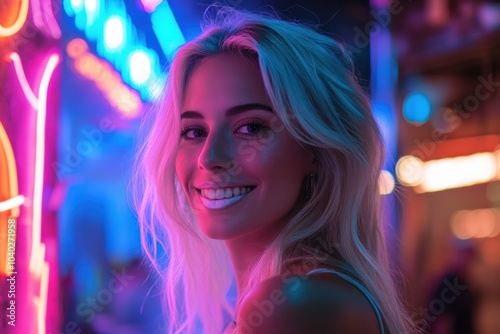 light, effect, smoke, blue, red, neon, blond, woman, smile, pink, lighting, closeup, portrait, dreamy, charming, fantasy, vibrant, happy, face, hair, illuminated, night, glow, beauty, nightclub, creative, party, fun, neon light, colourful, playful, radiant, feminine, bright, photo, artistic, glamour, soft, sensual, magical, glowing, modern, mood, photo, alluring