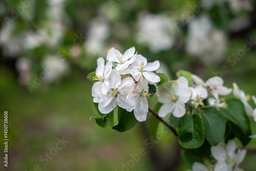 A blooming branch of an apple tree, white apple blossoms